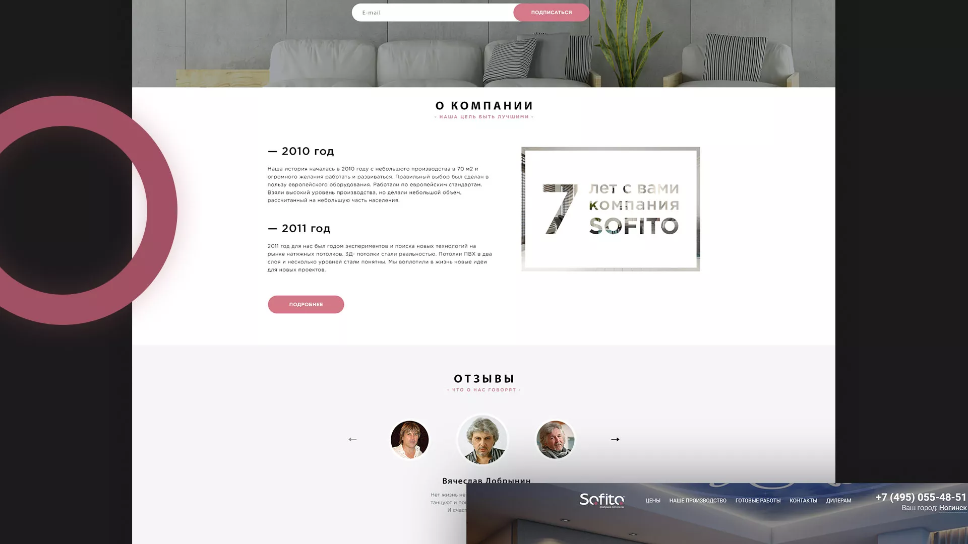 Достояние компании «Софито» — это люди. Фабрика потолков «Софито» — это команда профессионалов, проверенная временем! На счету компании многие эксклюзивные реализованные проекты в Дмитриеве с использованием натяжных потолков и других интерьерных решений.